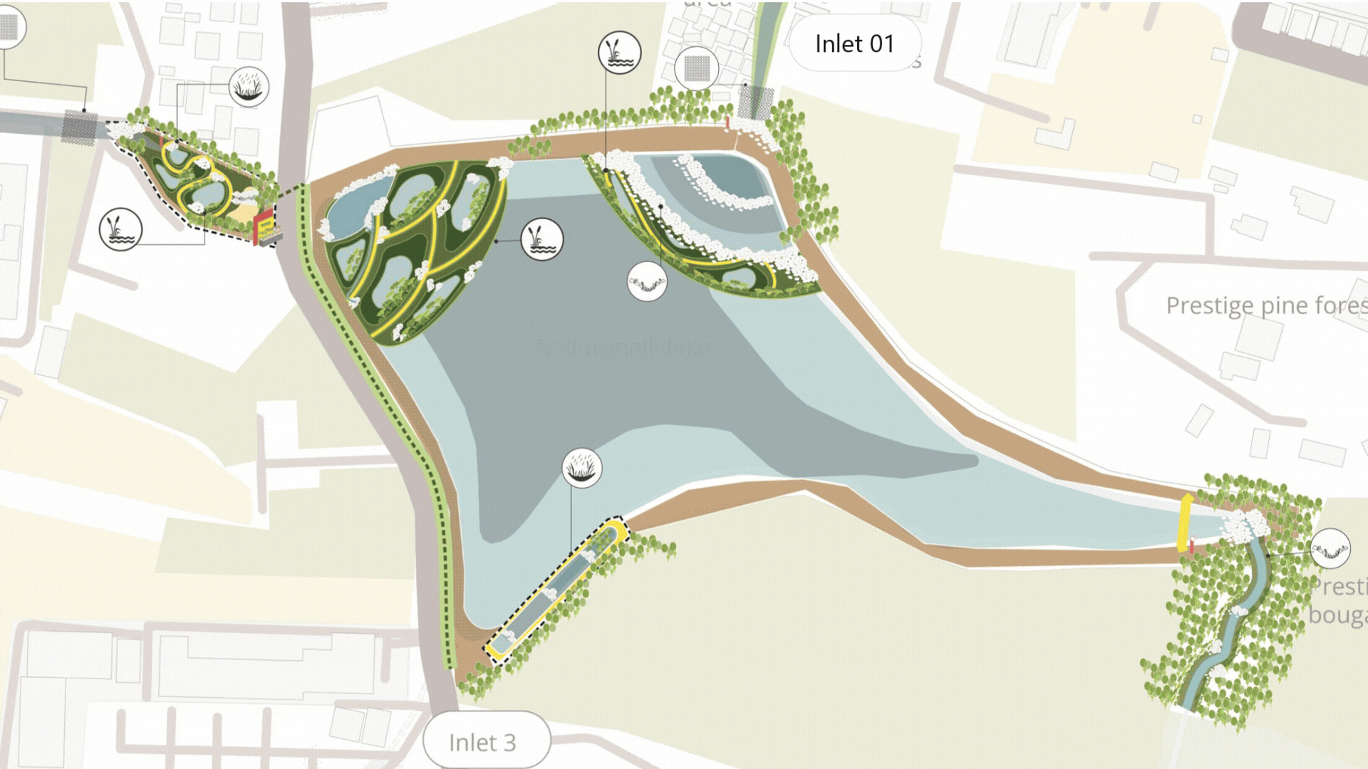Nallahs, as upstream components of the urban hydrological system, carry pollutants into larger water bodies, making source-level treatment critical for addressing water pollution and groundwater contamination. This proposal focuses on rejuvenating nallahs of Nallurhalli lake in Bengaluru through nature-based solutions using the 4P framework—Protect, Preserve, Promote, and Participate.