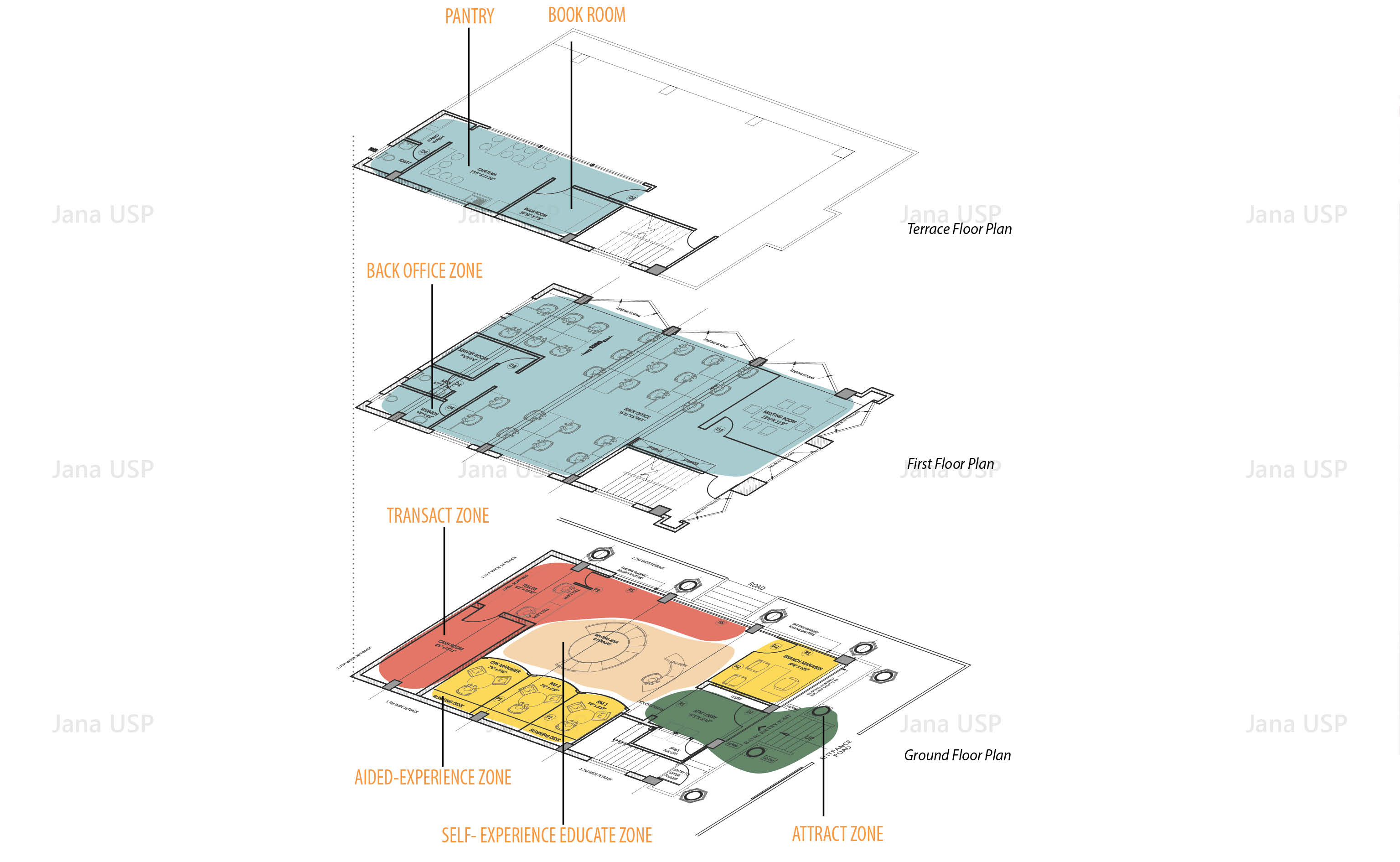 A design manual was prepared for the design, standardization, branding and implementation of the Jana Banks branches. The designs and drawings for 200 branches across the country was rolled out in the first phase. The design of the branches included customer interaction areas, discussion areas and back office areas along with branding and furniture design.